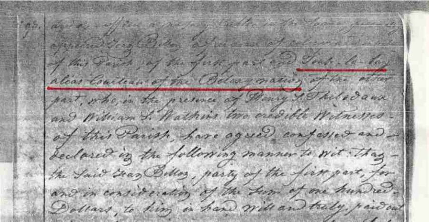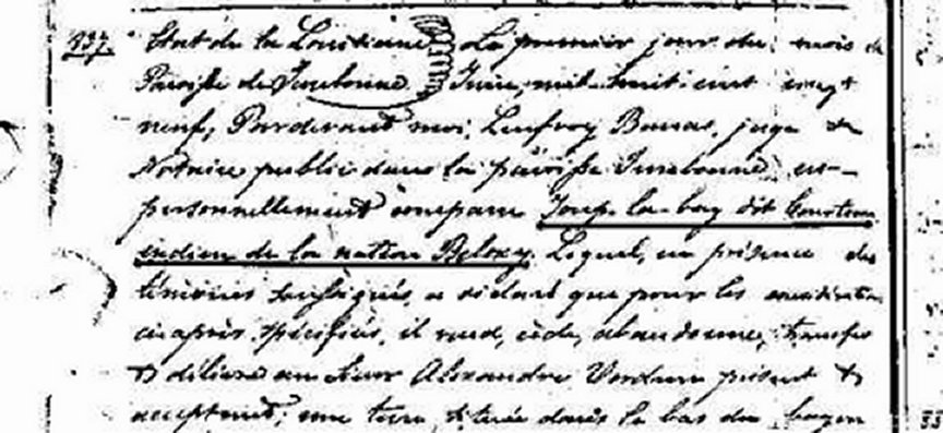 Be it remembered that on the twenty-ninth day of August in the forty seventh year of the independence of United States of America (Ao. Dni. 1822) before me Francis M. Guyol, judge for the parish of Terre-Bonne and ex-officio a notary Public in the same, personally appeared Jean Billot, a free man of coleur and resident of this Parish, of the first part and
